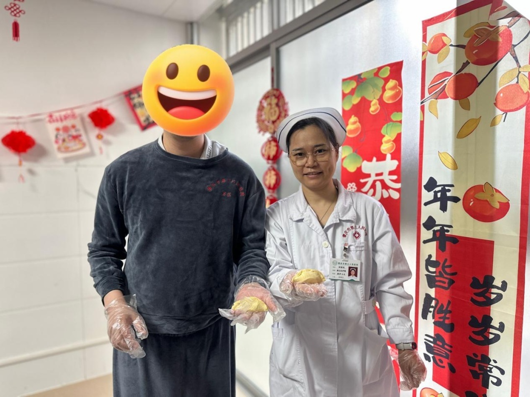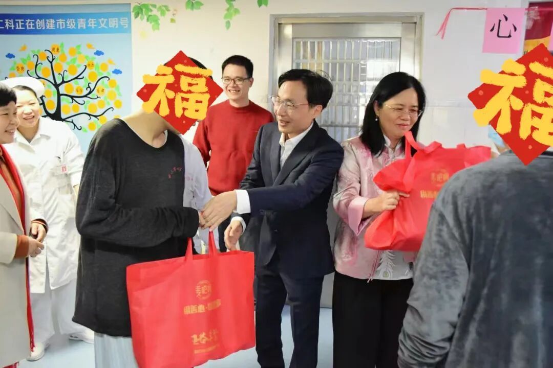 活动当天,我院党委书记廖振辉、副院长陈东梅及护理部主任容彩莲亲临病区,为患者送上新春祝福与爱心礼物,传递医院大家庭的关怀。一张张舒展的笑脸,是信任的回应,更是康复路上最动人的风景。我们始终坚信:节日的意义,不仅在于团圆,更在于以专业守护健康,以温情滋养心灵。愿这份节日的喜悦伴随每一位患者,迈向健康、温暖的新一年。