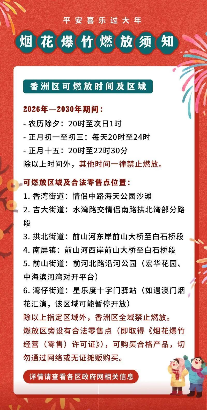 香洲区、高新区的每个集中燃放点均设有合法烟花爆竹零售点,建议市民在现场零售点购买购买合格烟花爆竹产品,进入燃放区域燃放,切勿购买“三无”、超标、假冒伪劣烟花爆竹,更不要通过网络或无证摊贩购买相关产品。